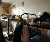 案例:今年6月從河北過來的張永剛和兩個(gè)同學(xué)合租住在唐家?guī)X。13平方米,一張雙人床、一個(gè)地鋪、一個(gè)小衣柜、兩個(gè)電腦桌、一個(gè)洗手池、3個(gè)人,小屋子滿滿當(dāng)當(dāng)!拔覀冐碓谲浖荆皟商靹偤灹撕贤,每月無責(zé)底薪1500元,外加200元補(bǔ)助!睆堄绖傉f,生活上一般都是自己做著吃,省錢。也就能養(yǎng)活自己,還沒能力報(bào)答父母。” |