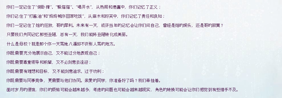 記者:我知道您最近在華中科技大的這個(gè)畢業(yè)演講引起了很大的轟動(dòng)。這個(gè)演講當(dāng)中有很多打動(dòng)80后、90后的東西,比如說(shuō)“你們一定記住了姐的狂放,哥的犀利。未來(lái)有一天,或許當(dāng)年的記憶會(huì)讓你們問(wèn)自己,曾經(jīng)是姐的娛樂(lè),還是哥的寂寞?”那這些話都是非常有網(wǎng)絡(luò)語(yǔ)言的特點(diǎn).我想問(wèn)一下,這個(gè)演講真的是您寫的嗎?還是您80后的秘書給寫的?