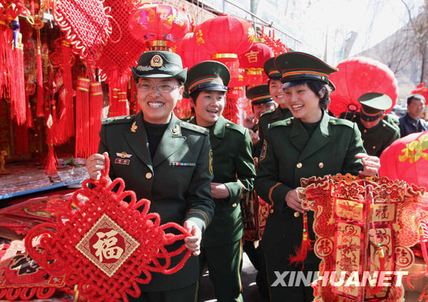 1月20日,武警西藏總隊(duì)二支隊(duì)的新兵在拉薩中和國際城花燈街選購年貨。春節(jié)前夕,武警西藏總隊(duì)來自祖國各地的官兵在高原警營里喜迎新春佳節(jié)。新華社發(fā)(趙艷志 攝)