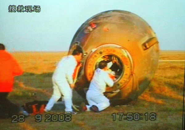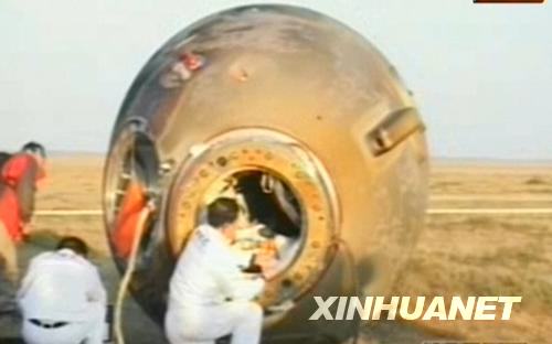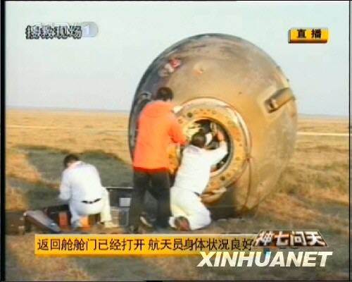 神七返回艙艙門打開(組圖)