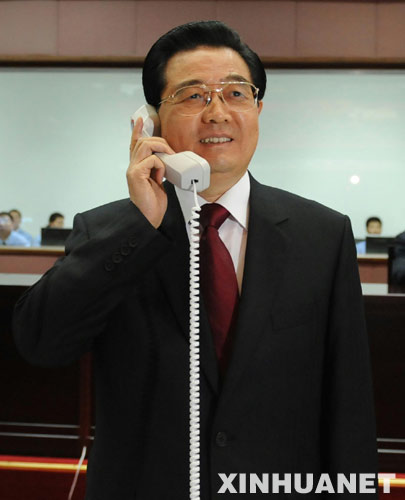 這是胡錦濤在航天員出艙活動結(jié)束后同他們親切通話,對成功出艙表示熱烈祝賀。新華社記者李學仁攝
