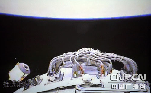 神七軌道艙返回艙分離。(中廣網(wǎng)記者南光 曹囡囡攝)