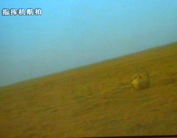 9月28日,神七返回艙成功著陸。新華社發(fā)(電視截圖)
