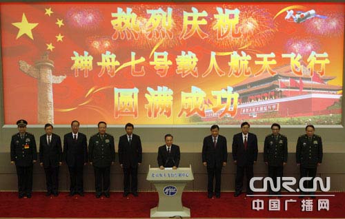 神七任務圓滿完成 溫家寶總理宣讀賀電