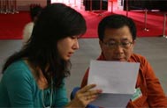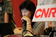 中國之聲記者焦瑩在準備連線稿