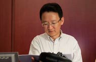 中央臺總編室新聞宣傳管理處處長劉磊在審聽直播前試音