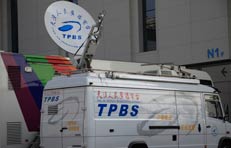 媒體轉(zhuǎn)播車集結(jié)會場外