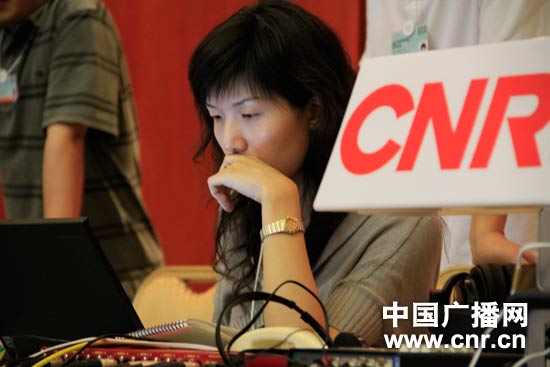 中國之聲記者焦瑩在準(zhǔn)備連線稿