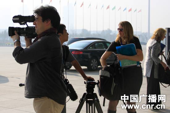 中外媒體記者早早來到會場,采訪拍攝到場嘉賓