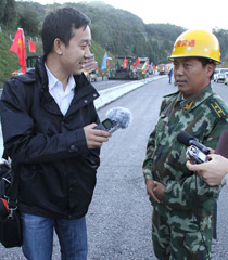 中央臺記者梁永春采訪武警交通部隊官兵
