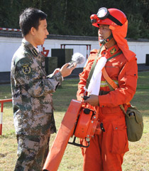 中央臺記者孫杰采訪訓練中的森警