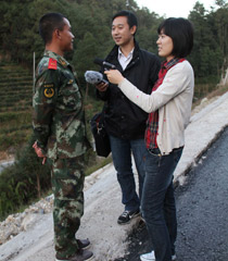 中央臺記者孫杰、王嫻采訪武警交通部隊戰(zhàn)士