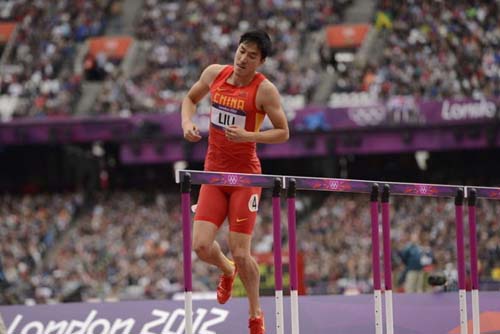 北京時間8月7日,2012年倫敦奧運會田徑比賽進入第五天,男子110米欄預賽第六小組中,劉翔在跨躍第一個欄時就打欄被絆倒,他因此沒有成績被淘汰。不過右腳受傷的劉翔堅持單腳跳到終點,他用這樣的方式結束自己的倫敦奧運之旅。