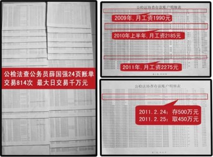 近日,有網(wǎng)友發(fā)帖稱,自己撿到一個檔案袋,袋中銀行賬戶過賬資料顯示,戶主薛國強(qiáng)從2006年6月至2011年3月,在農(nóng)信社賬戶交易814次,其中單日最大交易額達(dá)1000萬元,一日數(shù)百萬元、數(shù)十萬元的交易額度有多次。網(wǎng)友還發(fā)現(xiàn),薛國強(qiáng)系河南省平頂山市郟縣的公職人員,網(wǎng)友質(zhì)疑其“日出千萬”收支的合法性。