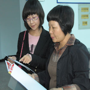 ▲鄭標(biāo)菊(右)到農(nóng)村檢查指導(dǎo)“廉潔村”創(chuàng)建工作。