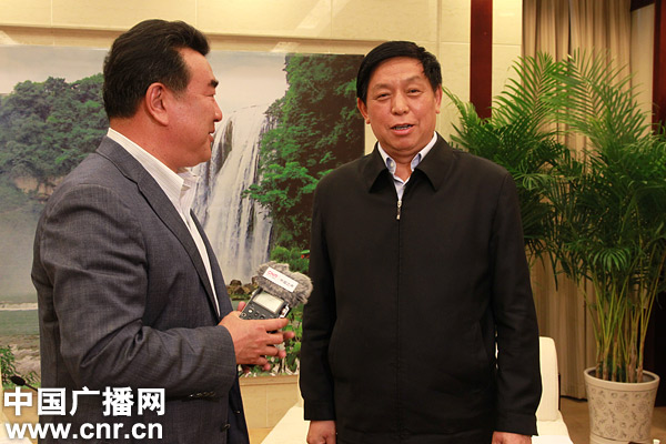 中央臺“走轉(zhuǎn)改”系列報道“傾聽貴州”采訪團(tuán)成員之一,中央人民廣播電臺臺長王求采訪貴州省委書記、省人大常委會主任栗戰(zhàn)書