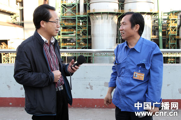 中央人民廣播電臺“喜迎十八大走基層轉(zhuǎn)作風(fēng)改文風(fēng)”《傾聽河北》采訪團(tuán)成員、中央人民廣播電臺分黨組成員、紀(jì)檢組長包云在京唐首鋼公司采訪員工