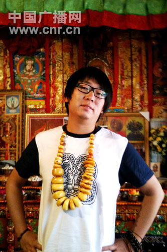 康珠的家雖然是租的房子,雖然客廳只有5-6平米,但是經(jīng)過他精心的裝飾和布置,房間四壁掛滿了佛像、照片、壁畫,充滿了藏族特色。剛坐下,康珠就為我們斟滿家鄉(xiāng)的茶,一種很香的據(jù)說可以緩解高原反應(yīng)的茶,這個時候,我才認(rèn)真的打量了康珠一番:黝黑的皮膚、又黑又濃的自來卷頭發(fā)、胸前長長的佛珠,再加上單純善良的笑容,典型藏族男人的形象。之前我對他的了解,僅限于“商家描述”:他算西藏特產(chǎn)的“一級批發(fā)商”,諸如蜜蠟、綠松石之類的很多原礦石,他從普通藏民家收購回來,然后倒手賣給八廊街的店鋪;而像藏刀、手串這種工藝品,他還會自己制作,選料正宗、工藝還算精美,所以,他賣的東西,要比普通店鋪便宜很多。只是他的貨品不全,你來了,趕上他“收”到了什么東西,就看什么東西;如果你有特定要求,比如什么品質(zhì)的蜜蠟、什么樣子的首飾,他再幫你找或者制作,有點“私房菜”的意思。