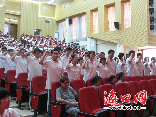 ?诰W(wǎng)6月20日消息(記者 謝舒)20日下午,海南華僑中學(xué)舉行紀(jì)念中國共產(chǎn)黨建黨91周年大會(huì)暨新黨員宣誓儀式。已獲海南僑中高三黨支部大會(huì)批準(zhǔn)入黨的85名預(yù)備黨員莊嚴(yán)宣誓:我志愿加入中國共產(chǎn)黨,擁護(hù)黨的綱領(lǐng),遵守黨的章程……。