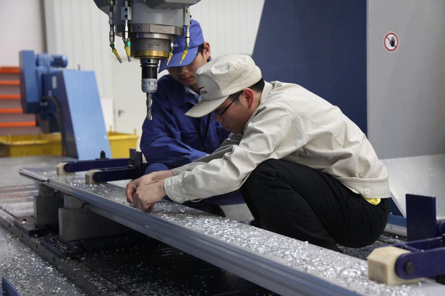 圖一:作為我國軌道交通裝備制造業(yè)的龍頭企業(yè),目前,中國南車構(gòu)建了鐵路機(jī)車車輛、動(dòng)車組、城軌車輛自主研發(fā)、規(guī)模制造、規(guī)范服務(wù)的完整體系,同時(shí)積極發(fā)展儲(chǔ)能式輕軌、100%低地板有軌電車等戰(zhàn)略性新興產(chǎn)業(yè)。圖為南車株機(jī)公司工人正對(duì)鋁型材進(jìn)行機(jī)械加工。