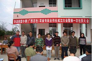 在農(nóng)村改革實(shí)施聯(lián)產(chǎn)承包責(zé)任制30年后的今天,不可否認(rèn)農(nóng)民的個(gè)人收入已經(jīng)有了大幅提高,但是希望小鎮(zhèn)要能夠可持續(xù)發(fā)展卻面臨一個(gè)突出的問(wèn)題:集體經(jīng)濟(jì)缺失,公共積累幾乎為零,這也是當(dāng)前中國(guó)農(nóng)村發(fā)展中普遍存在的突出問(wèn)題。發(fā)展壯大小鎮(zhèn)集體經(jīng)濟(jì),在農(nóng)民個(gè)人收入增長(zhǎng)的同時(shí)逐步實(shí)現(xiàn)公共積累的同步增長(zhǎng)并保持小鎮(zhèn)能夠可持續(xù)發(fā)展,是華潤(rùn)希望小鎮(zhèn)幫扶工作要實(shí)現(xiàn)的最終目標(biāo)。農(nóng)民專(zhuān)業(yè)合作社華潤(rùn)希望小鎮(zhèn)項(xiàng)目啟動(dòng)以后,經(jīng)過(guò)一段時(shí)間的產(chǎn)業(yè)幫扶實(shí)踐,農(nóng)民專(zhuān)業(yè)合作社這一組織形式被正式確定為華潤(rùn)希望小鎮(zhèn)產(chǎn)業(yè)幫扶和發(fā)展農(nóng)村集體經(jīng)濟(jì)的載體和平臺(tái)。設(shè)立農(nóng)民專(zhuān)業(yè)合作社,不僅是構(gòu)建一個(gè)生產(chǎn)組織,也是重構(gòu)鄉(xiāng)村社會(huì)組織與發(fā)展鄉(xiāng)村民主的重要內(nèi)容。農(nóng)民專(zhuān)業(yè)合作社按照自愿參加、自愿入股的原則,建立生產(chǎn)合作社組織,形成經(jīng)濟(jì)集體組織模式,發(fā)展新型農(nóng)村集體經(jīng)濟(jì)。百色華潤(rùn)希望小鎮(zhèn)開(kāi)工建設(shè)以后,溫鐵軍教授就帶領(lǐng)他的學(xué)生們以農(nóng)民專(zhuān)業(yè)合作社、現(xiàn)代生態(tài)農(nóng)業(yè)和農(nóng)村合作金融為主題,在田間地頭和鄉(xiāng)村學(xué)校對(duì)小鎮(zhèn)村民進(jìn)行了一系列別開(kāi)生面的培訓(xùn)。擔(dān)任培訓(xùn)老師的不光有“三農(nóng)問(wèn)題”的專(zhuān)家學(xué)者,而且還有在安徽、吉林等地已經(jīng)成功組織運(yùn)營(yíng)過(guò)農(nóng)民專(zhuān)業(yè)合作的村官與農(nóng)民,通過(guò)宣傳培訓(xùn),小鎮(zhèn)村民真正明白了“合作起來(lái)有好處”的道理,農(nóng)民合作社的經(jīng)營(yíng)理念已經(jīng)在小鎮(zhèn)深入人心。經(jīng)過(guò)精心的組織與籌備,百色華潤(rùn)希望小鎮(zhèn)農(nóng)民專(zhuān)業(yè)合作社于2009年1月19日順利召開(kāi)成立大會(huì)暨第一屆社員大會(huì),每股本金100元,小鎮(zhèn)片區(qū)農(nóng)戶踴躍入社,入社農(nóng)民達(dá)424人,戶入社率85%以上,自籌本金近20萬(wàn)元;華潤(rùn)慈善基金也是合作社的法人社員之一,合作社由入社農(nóng)民民主推選的代表?yè)?dān)任理事,在理事會(huì)的民主決策下,合作社有效組織入社農(nóng)戶統(tǒng)一采購(gòu)農(nóng)資,指導(dǎo)農(nóng)戶進(jìn)行科學(xué)種植和養(yǎng)殖業(yè)生產(chǎn),統(tǒng)一為入社農(nóng)戶的農(nóng)副產(chǎn)品注冊(cè)了“澄碧湖”牌商標(biāo),成功組織了小西紅柿、西瓜、生豬等農(nóng)副產(chǎn)品的統(tǒng)購(gòu)統(tǒng)銷(xiāo),合作社還與華潤(rùn)萬(wàn)家、華潤(rùn)五豐合資合作經(jīng)營(yíng)了育苗廠、孵化廠、生活及農(nóng)資超市以及生態(tài)養(yǎng)豬廠,截至到2010年年底,合作社已經(jīng)進(jìn)行了兩次分紅,每股分紅達(dá)到36.29元,收益率和入社率都高居全國(guó)農(nóng)民專(zhuān)業(yè)合作社前列。
