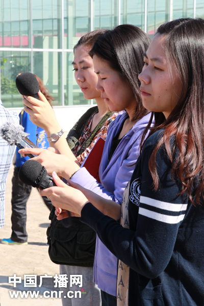 中國(guó)之聲記者杜希萌(左)、劉黎黎(中)、楊寧(右)在《傾聽新疆》走轉(zhuǎn)改采訪活動(dòng)中現(xiàn)場(chǎng)錄音