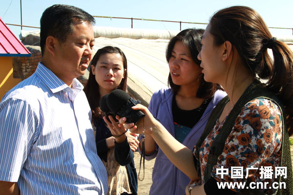 中國(guó)之聲記者劉黎黎(左)、杜希萌(左二)、楊寧(左三)在《傾聽新疆》走轉(zhuǎn)改采訪活動(dòng)中現(xiàn)場(chǎng)錄音