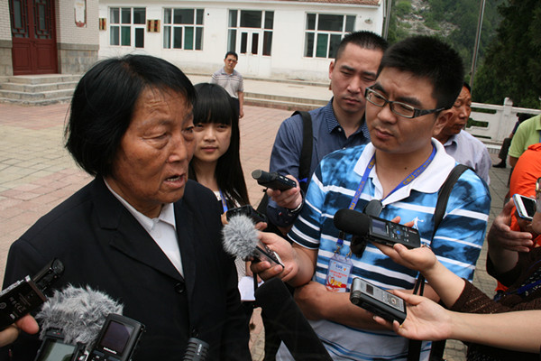 中央臺(tái)山西記者站記者李凡(右一)采訪全國(guó)勞模申紀(jì)蘭