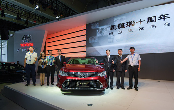 (2016年7月15日,長春)廣汽豐田在長春車展發(fā)布了凱美瑞十周年紀念版,以此致敬經(jīng)典全球車在中國市場走過的十年榮耀之路,以趨向極致的均衡產(chǎn)品力和匠心品質(zhì),為消費者帶來更具價值的中高級轎車購買選擇。