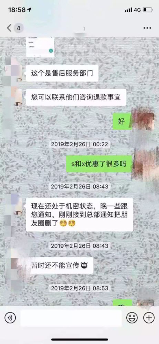 對于2019年3月1日前完成交付的車主來說,短時(shí)間內(nèi)的價(jià)格暴跌,讓人有種“白花冤枉錢”的感覺;而更令人難以接受的,則是特斯拉銷售人員在降價(jià)之前便已得到消息,卻又對消費(fèi)者刻意隱瞞。