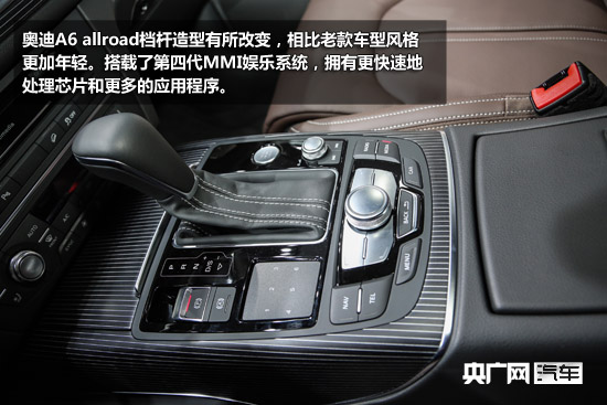 內(nèi)飾方面,奧迪A6 allroad quattro內(nèi)飾設(shè)計(jì)基本與奧迪A6L相同,僅在方向盤和檔桿上有些區(qū)別。三幅式方向盤采用真皮包裹,手感細(xì)膩,但略顯單薄。中控臺(tái)中央的8英寸液晶顯示屏能夠收入中控臺(tái)內(nèi)部,顯得很有科技感。新車搭載了第四代MMI娛樂(lè)系統(tǒng),擁有更快速地處理芯片和更多的應(yīng)用程序。檔桿造型有所改變,相比老款車型風(fēng)格更加年輕。