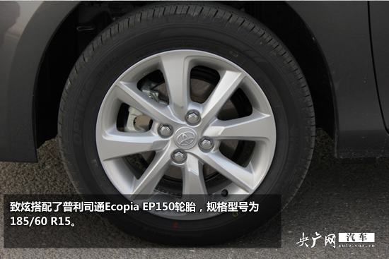 致炫的側(cè)面線條流暢自然,上下腰線很好的凸顯了該車的運動氣息,該車搭配了普利司通Ecopia EP150輪胎,規(guī)格型號為185/65 R15,大小很符合致炫的車型,而且這款輪胎的特點是節(jié)能耐磨,很適合家用車使用;致炫的長寬高分別為4115mm/1700mm/1495mm,軸距為2550mm,比其前身雅力士要大了不少,相信內(nèi)部空間也會比雅力士有所增加。