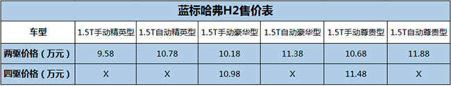 藍(lán)標(biāo)哈弗H2搭載1.5T渦輪增壓發(fā)動機(jī)和6MT、6AT變速器,成熟可靠,燃油經(jīng)濟(jì)性好;獨立懸架底盤,操控、舒適性超越同級;全系標(biāo)配博世第九代ESP,集成TCS牽引力控制、HDC陡坡緩降、HHC上坡輔助等功能。車身高強(qiáng)鋼應(yīng)用超過60%,配備6安全氣囊及主動安全頭枕,提供全方位保護(hù)。