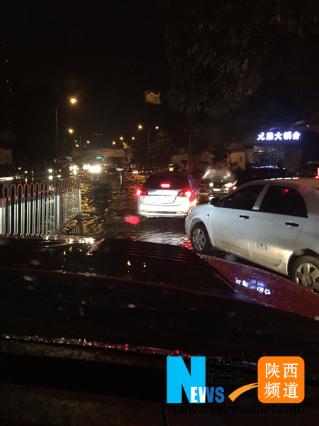 8月2日晚,暴雨導(dǎo)致西安多處街道積水(圖/蔡雨庭 攝)