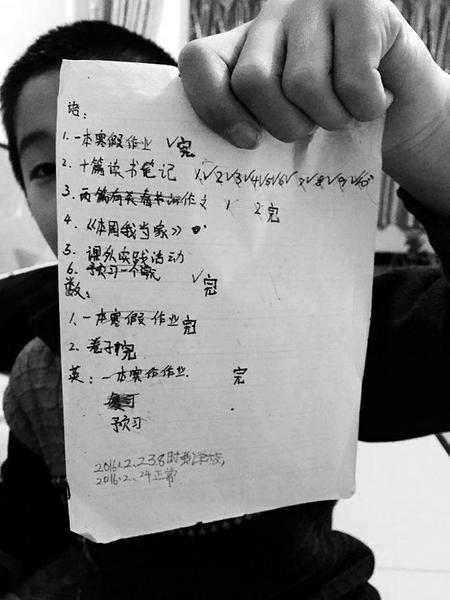 寒假期間,王師傅每天晚上回來都要檢查兒子的寒假作業(yè)完成情況,少不了強調(diào):“你的人生起點要比你的老子高一些,否則我和你媽算是白辛苦了。”王飛鵬悄悄地告訴記者,為了完成假期作業(yè),自己和同學(xué)已經(jīng)想盡了辦法,而最有效和最便捷的策略,就是搞起了完成作業(yè)的“互助組”。