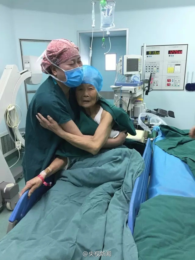 原標(biāo)題:老人術(shù)前嚇哭 護(hù)士用擁抱化解她的恐懼