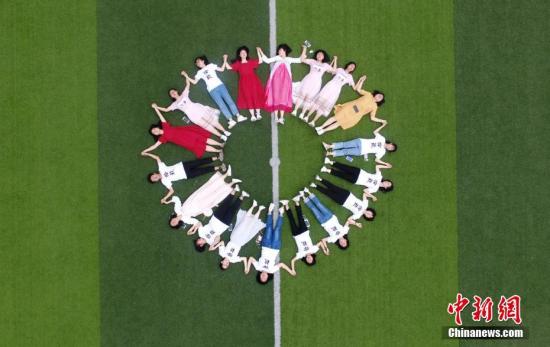 高三學(xué)生創(chuàng)意畢業(yè)照輕松迎高考:學(xué)生們圍成一個(gè)圈。何紅福 攝