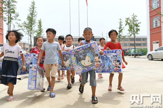 央廣網(wǎng)合肥8月4日消息(記者王利 通訊員桂運安 圖吳文兵)8月3日上午,安徽向日葵公益助學服務中心牽手阜陽市潁東區(qū)委區(qū)政府、京東集團華東分公司,赴潁東區(qū)新烏江鎮(zhèn)第二小學開展“扶貧助困關(guān)愛留守兒童”活動,為當?shù)?6名留守兒童送去了書包、圖書、文具、羽毛球拍等價值2萬元的愛心物資。
