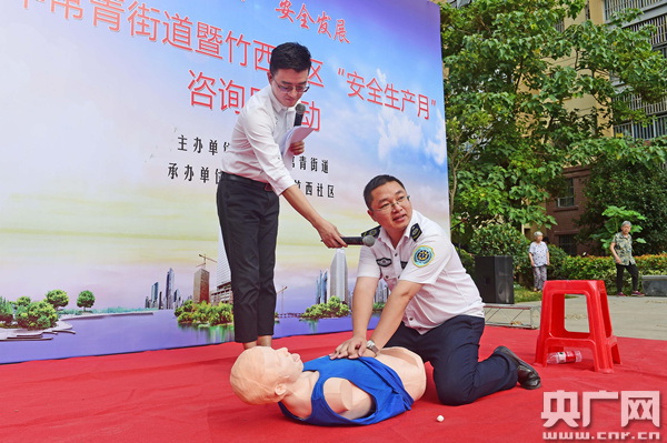 活動現(xiàn)場,社區(qū)工作人員向居民群眾發(fā)放安全宣傳資料、設(shè)置微信墻二維碼,提醒居民注意用火、用氣、用電、用油安全。為了增強(qiáng)居民的自救意識和能力,社區(qū)還專門邀請急救醫(yī)生現(xiàn)場為居民講解、演示常見的急救方法。