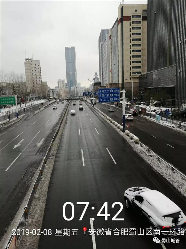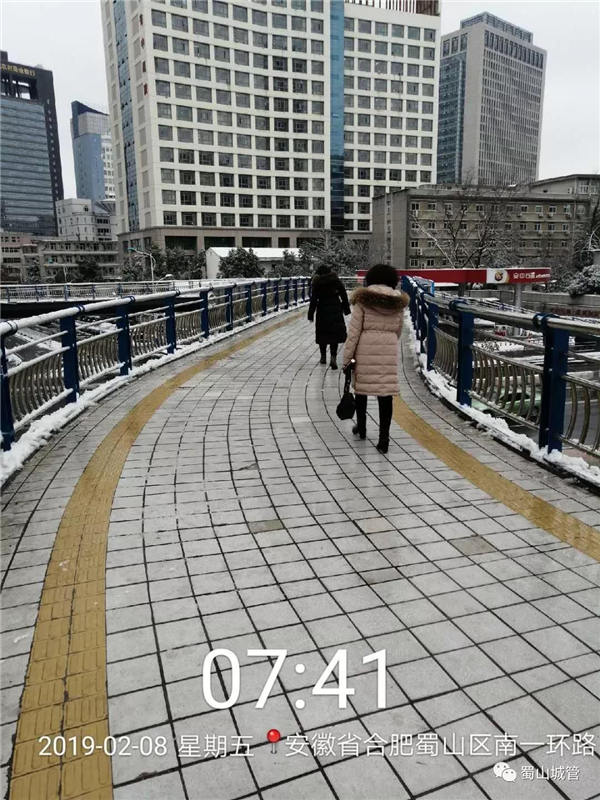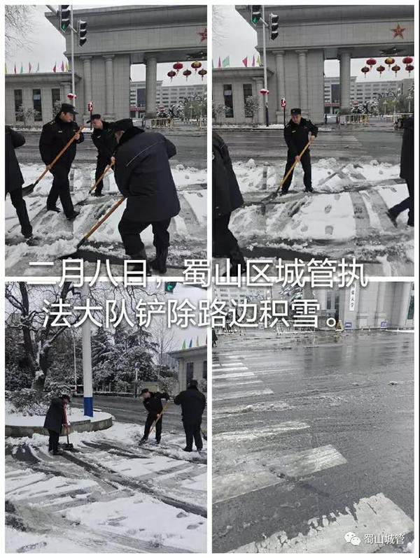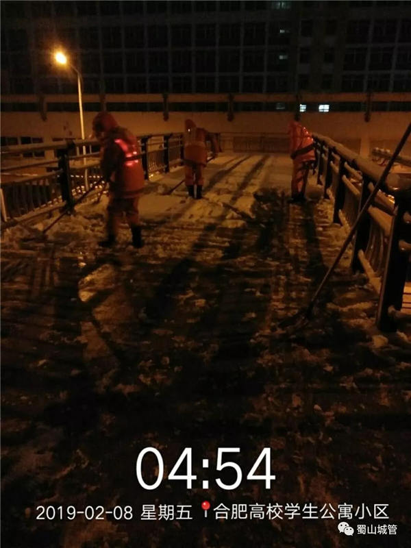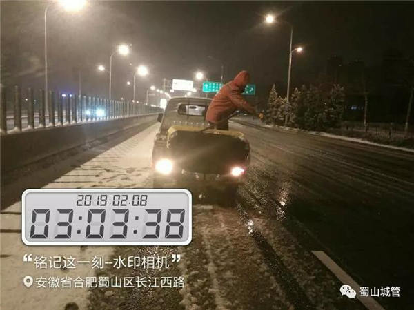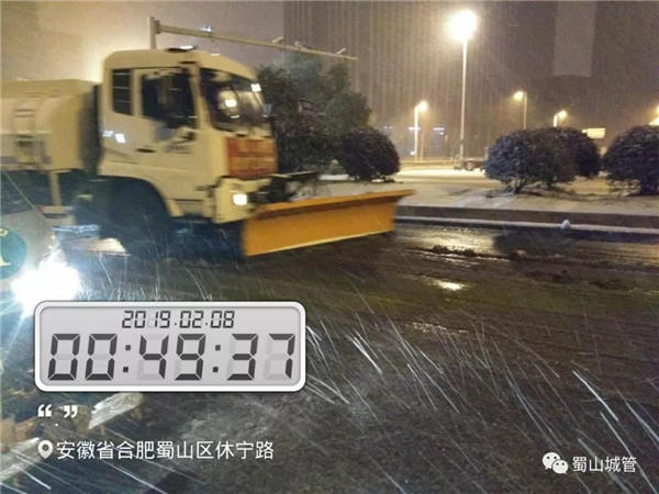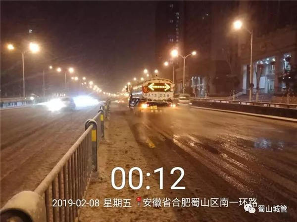 這個(gè)雪夜,環(huán)衛(wèi)橘和城管藍(lán)又是一夜無(wú)眠,他們奔走在合肥各個(gè)大街小巷,為市民的安全出行保駕護(hù)航。