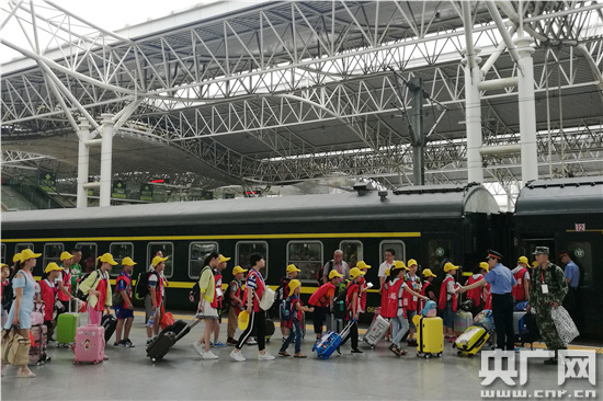 央廣網(wǎng)合肥7月4日消息(記者劉軍)“嗚——”7月4日12時(shí)52分,隨著一聲響亮的汽笛聲,全國首個(gè)校園足球?qū)n}研學(xué)專列——“皖新號”青島研學(xué)專列從合肥火車站出發(fā),一路將?堪霾骸⑺拗,最終載著800余名安徽全省各地的孩子奔向山東,開啟一段為期6天的專列研學(xué)時(shí)光。
