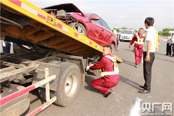 此次演練以合肥往南京方向的施工路段發(fā)生小轎車與大貨車追尾事故造成通行受阻,參演人員各司其職按照應(yīng)急演練方案依序?qū)嵤┝诵畔@取發(fā)布報告、現(xiàn)場勘驗、傷員救助、車輛清障等演練科目。整個演練過程持續(xù)1個多小時。通過演練,進一步檢驗了參演各單位在突遇施工路段交通事故時的協(xié)調(diào)指揮能力和對事故的快速處置水平,為即將到來的中秋國慶期間,大車流量安全有序通行施工路段積累了實戰(zhàn)經(jīng)驗。