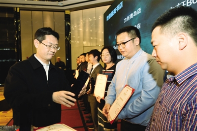 安徽省委宣傳部副部長(zhǎng)操龍燦為十家特色書(shū)店頒獎(jiǎng)。
