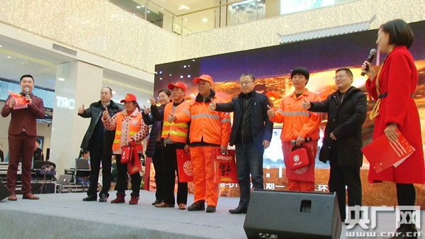 來自合肥軌道交通建設(shè)員工、綠化環(huán)衛(wèi)保潔員的共20名先進(jìn)工作代表還現(xiàn)場贈(zèng)送健康包和新年福袋。