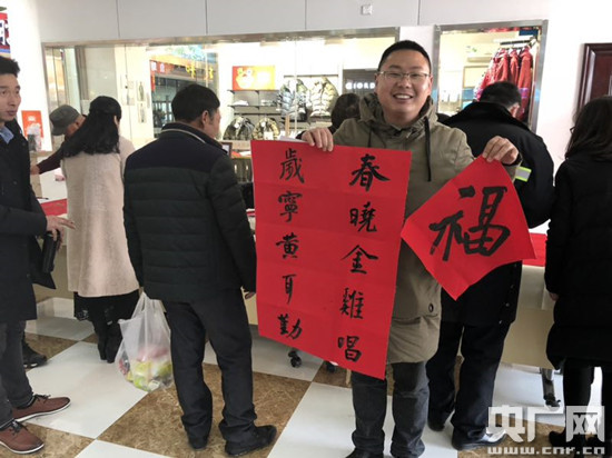 央廣網(wǎng)記者了解到,春節(jié)將近,安徽高速服務區(qū)特邀請書法名家為司乘人員義務寫春聯(lián),活動現(xiàn)場頓時熱鬧非凡。當天,書法名家們在3個小時的活動中,共書寫送出1000余副春聯(lián)及福字,為服務區(qū)增添了濃濃年味。