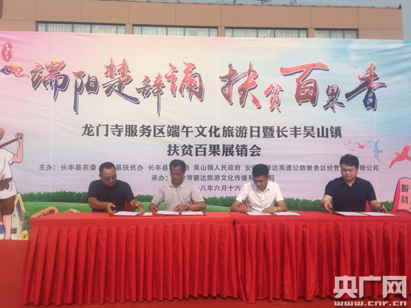 央廣網(wǎng)合肥6月17日消息(記者徐鵬)“端陽楚辭誦,扶貧百果香!昨天,合肥市長豐縣吳山鎮(zhèn)扶貧百果展銷會(huì)暨“楚辭”朗讀者專場活動(dòng)在安徽驛達(dá)龍門寺服務(wù)區(qū)舉行,近30家農(nóng)企代表和農(nóng)戶代表參展。