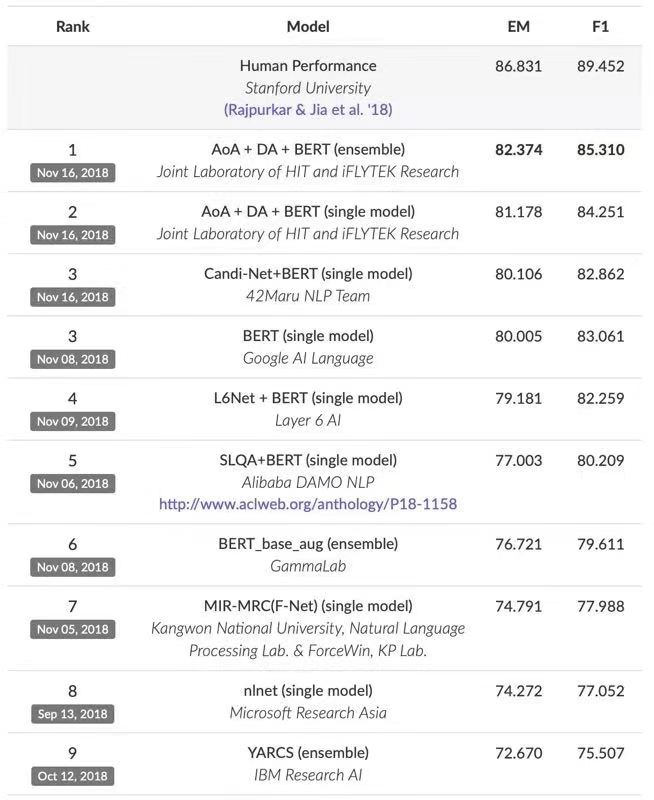 機器自然語言理解挑戰(zhàn)賽(SQuAD)