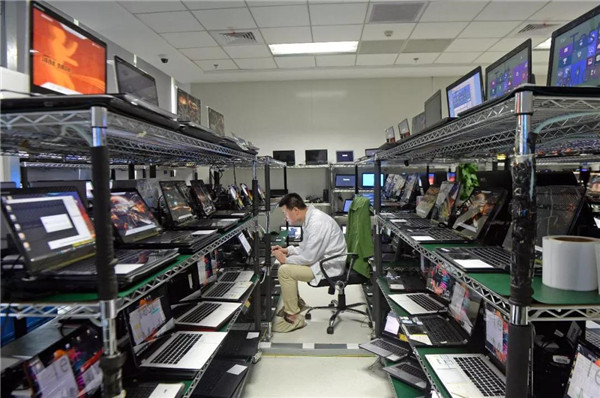 在聯(lián)寶(合肥)電子科技有限公司,工作人員正在對(duì)筆記本電腦進(jìn)行滿負(fù)荷壓力測試。記者張大崗攝