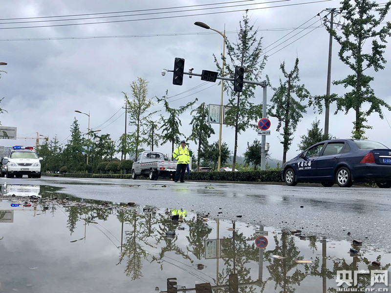 歙縣二中門口的路面已基本恢復(fù)正常。(央廣網(wǎng)發(fā) 徐鵬攝)