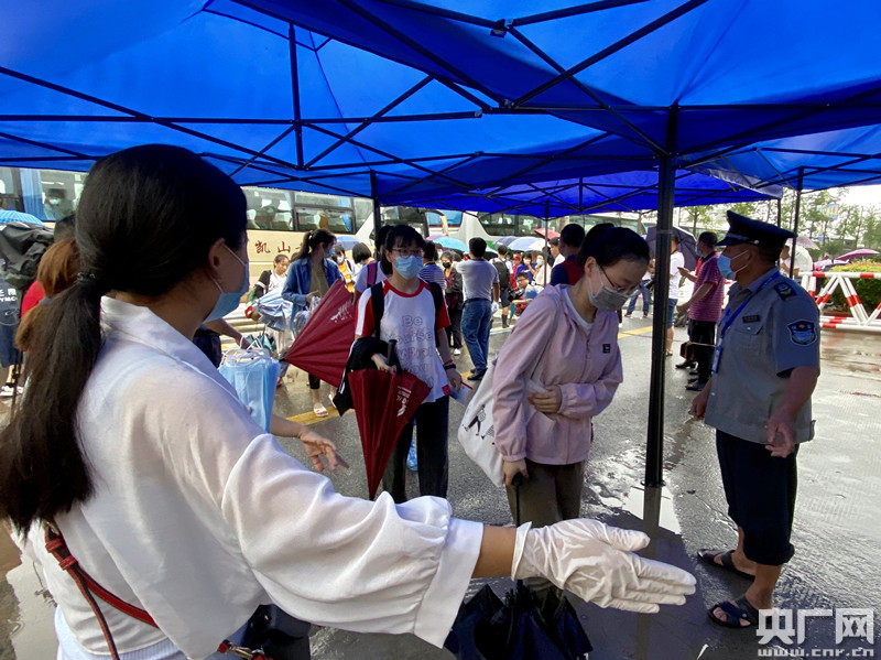 考生在進(jìn)行體溫檢測(cè)。(央廣網(wǎng)發(fā) 張強(qiáng)攝)